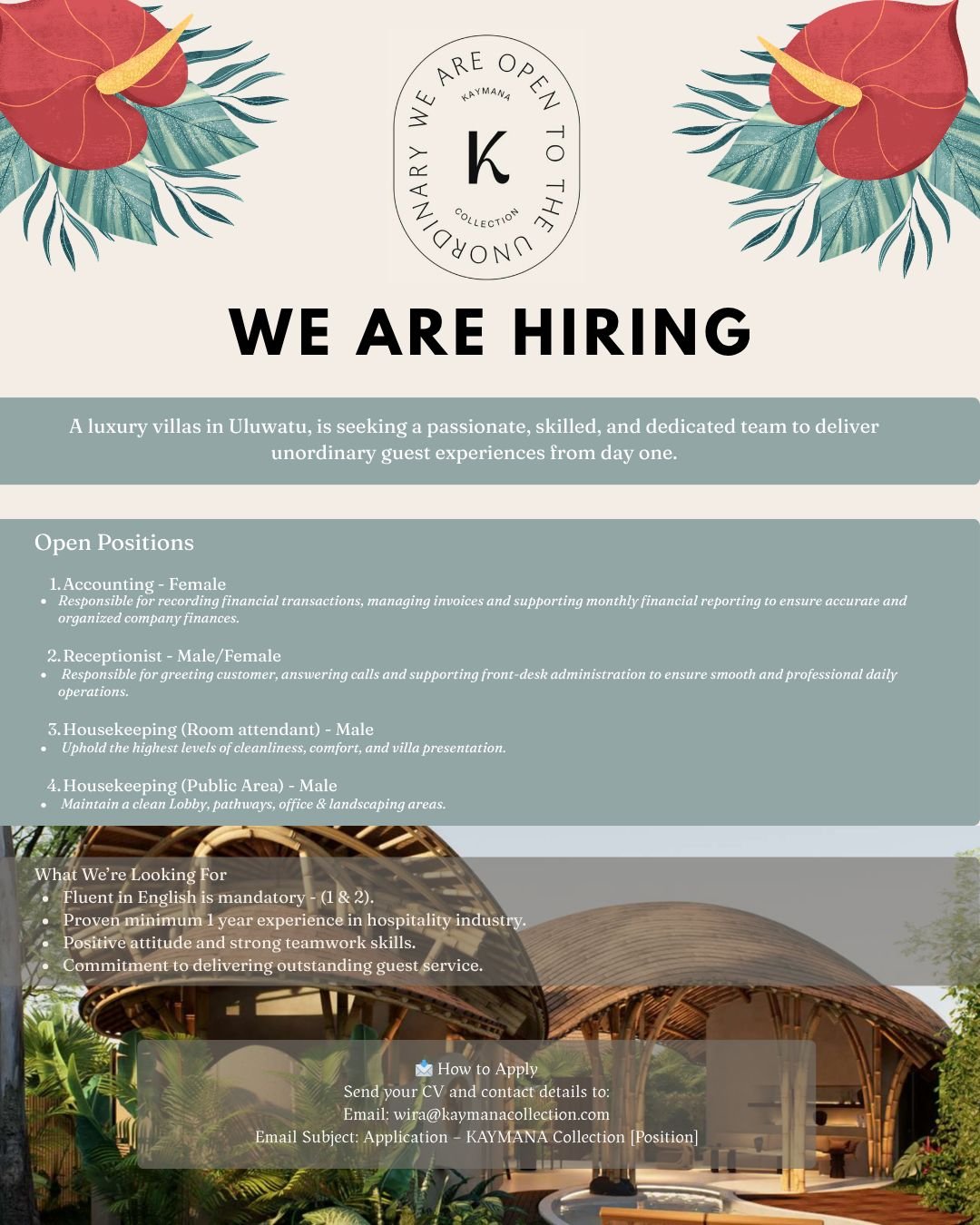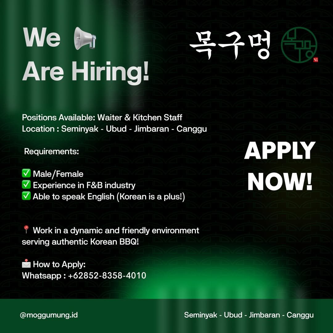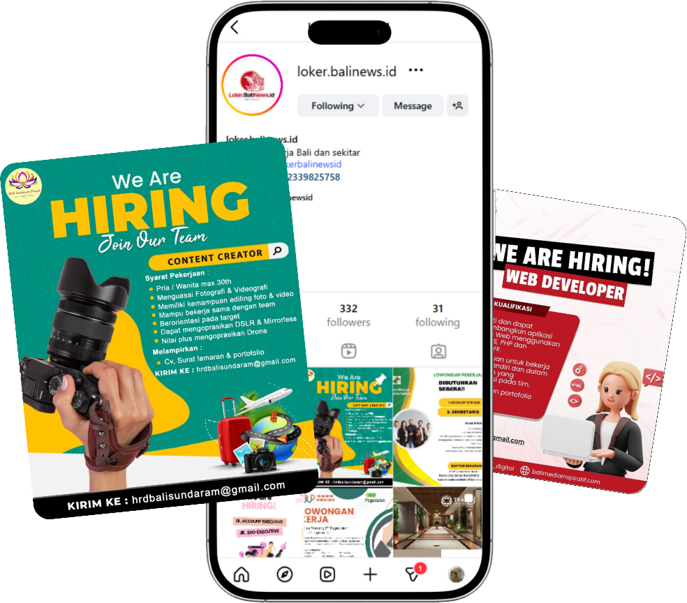 Dapatkan informasi terbaru lowongan kerja di Bali dan sekitarnya langsung dari Instagram kami