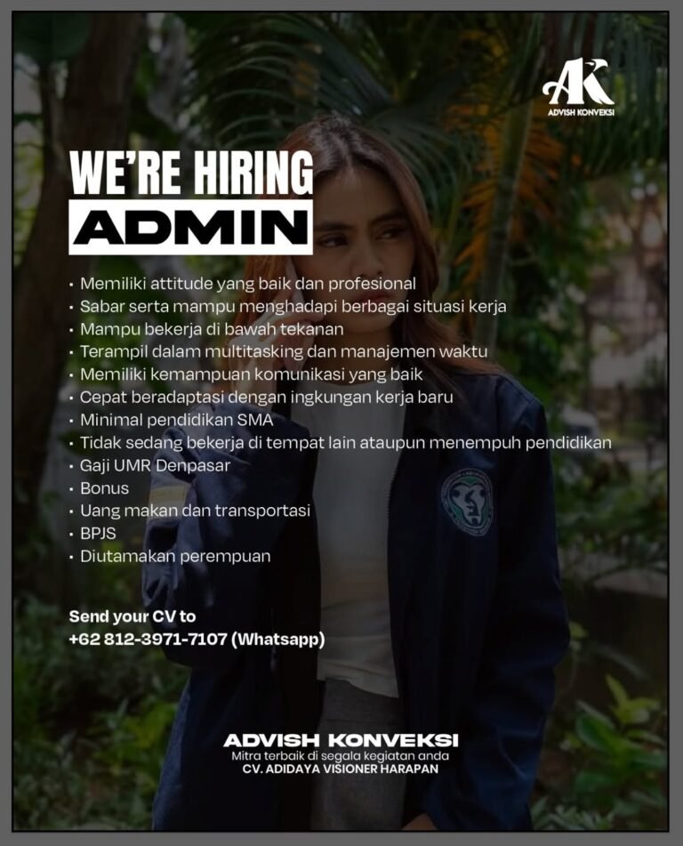 Advish Konveksi, yang mengklaim sebagai mitra terbaik dalam segala kegiatan, membuka lowongan pekerjaan untuk posisi ADMIN di Denpasar. Lowongan ini mengutamakan kandidat wanita dan menawarkan paket kompensasi yang menarik, termasuk Gaji UMR Denpasar.