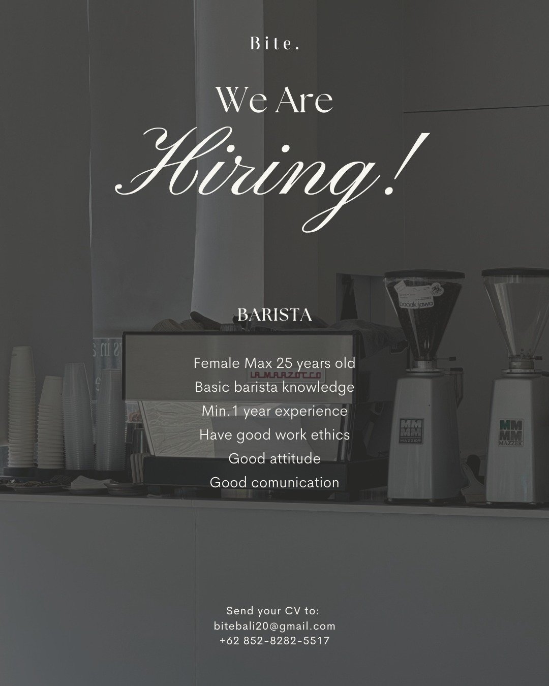 LOKER.BALINEWS.ID, BADUNG – Bite Bali saat ini membuka lowongan kerja Bali untuk beberapa posisi operasional restoran. Kesempatan ini terbuka bagi kandidat wanita maksimal usia 25 tahun yang memiliki pengalaman kerja minimal 1 tahun dan siap bekerja full time. Perusahaan mencari individu yang memiliki etos kerja baik, mampu bekerja di bawah tekanan, serta memiliki sikap dan komunikasi yang baik. Posisi yang dibuka meliputi Admin, Barista, dan Waiters dengan kualifikasi sesuai bidang masing-masing. Pelamar yang memenuhi kriteria dapat segera mengirimkan CV melalui email atau WhatsApp yang tertera.