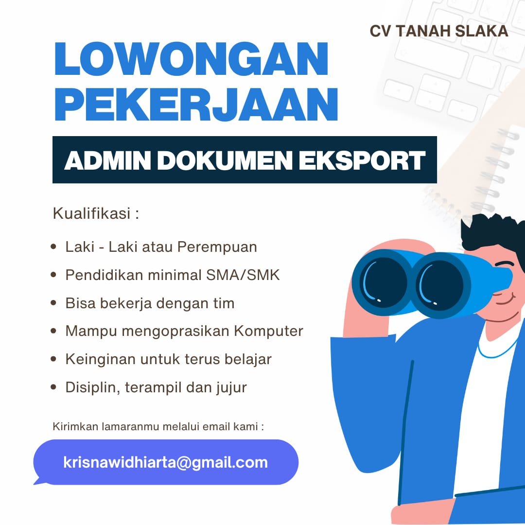 Loker.BaliNews.id, Bali – CV Tanah Slaka membuka lowongan pekerjaan untuk posisi Admin Dokumen Eksport, sebuah peran penting dalam pengelolaan administrasi dan kelancaran proses ekspor perusahaan. Posisi ini terbuka untuk kandidat laki-laki maupun perempuan dengan pendidikan minimal SMA/SMK.