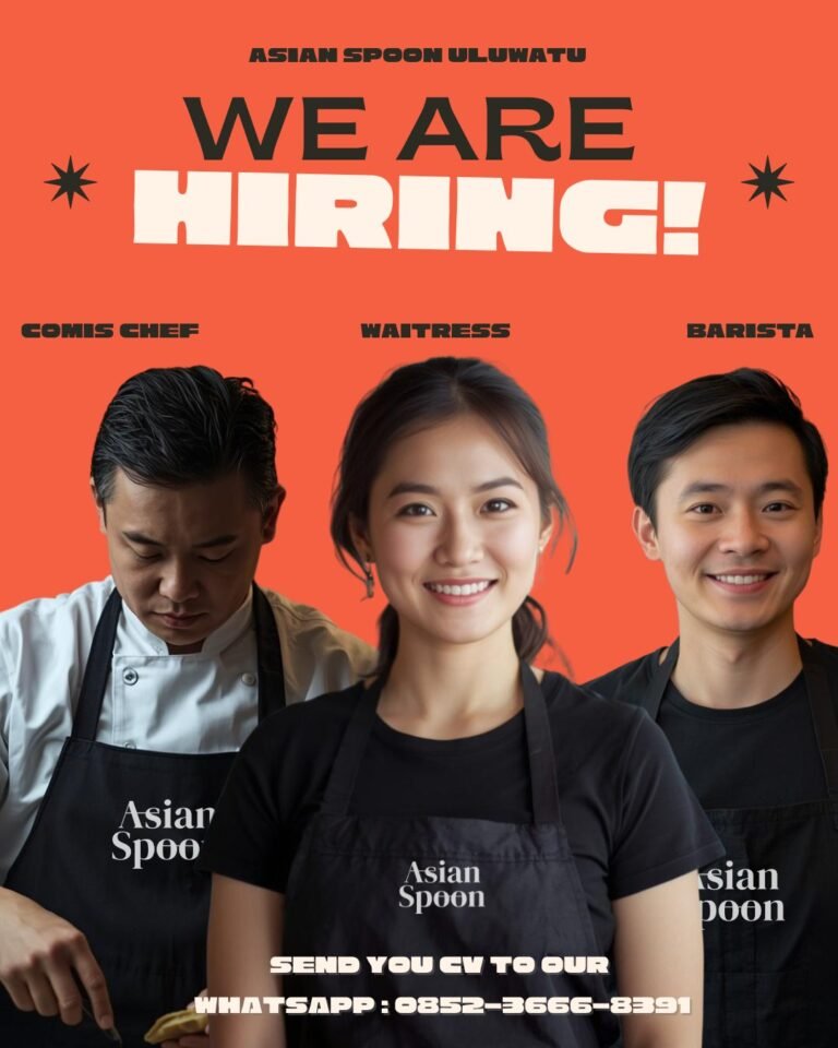 LOKER.BALINEWS.ID, BADUNG – Asian Spoon Uluwatu, salah satu destinasi kuliner populer di kawasan Uluwatu, saat ini tengah membuka kesempatan berkarir bagi para profesional muda di bidang Food and Beverage. Restoran ini sedang mencari kandidat yang energik dan berdedikasi untuk mengisi tiga posisi kunci, yakni Comis Chef, Waitress, dan Barista. Kesempatan ini terbuka bagi individu yang ingin mengembangkan kemampuan mereka dalam lingkungan kerja yang dinamis dan bertaraf internasional di Bali selatan.