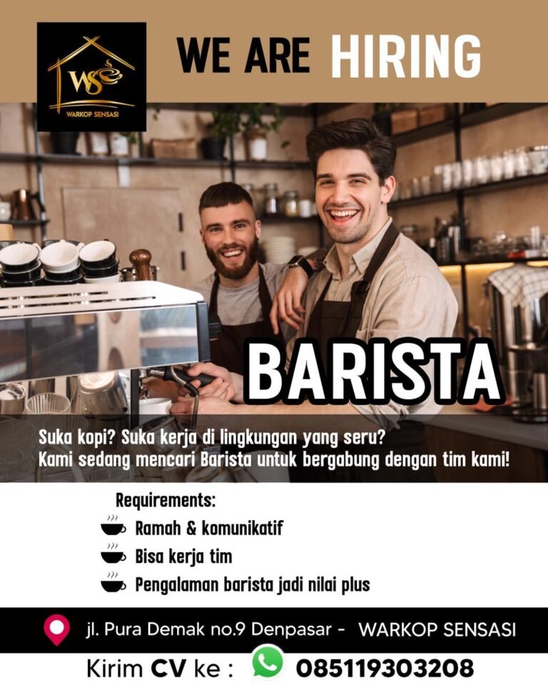 LOKER.BALINEWS.ID, DENPASAR – Warkop Sensasi, salah satu tempat tongkrongan populer di area Denpasar, saat ini sedang membuka kesempatan karier bagi para profesional muda. Usaha kuliner yang berlokasi di Jalan Pura Demak No. 9 ini tengah mencari kandidat yang energik untuk mengisi posisi sebagai Barista guna memperkuat tim operasional mereka.