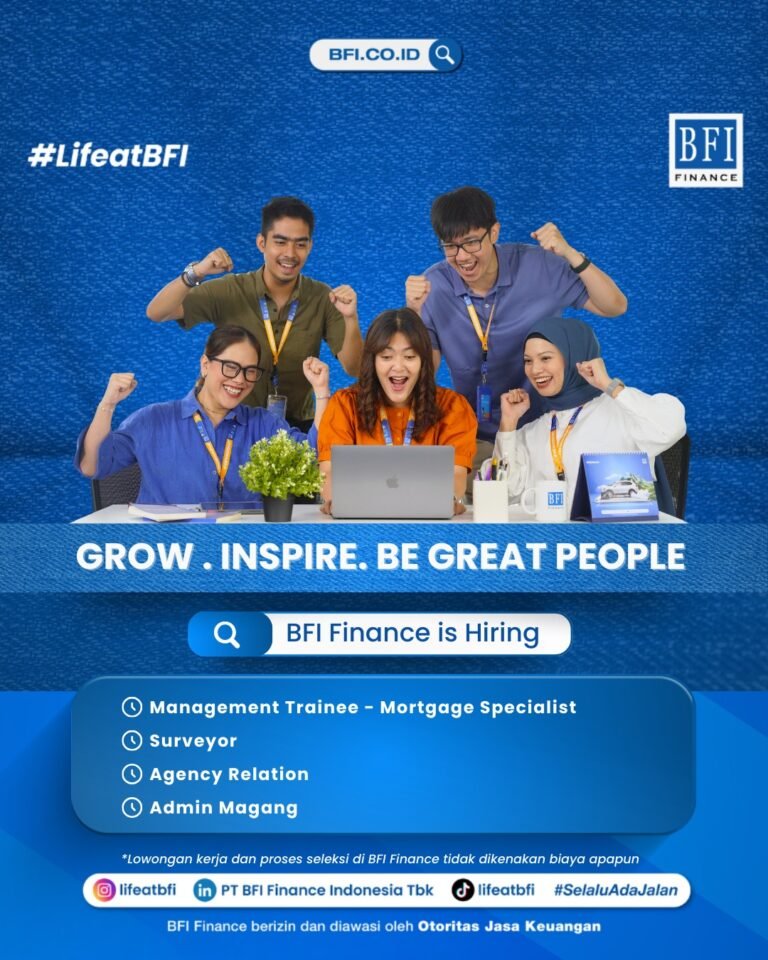 LOKER.BALINEWS.ID, DENPASAR – BFI Finance, salah satu perusahaan pembiayaan terkemuka di Indonesia, saat ini sedang membuka kesempatan berkarier bagi putra-putri terbaik di Bali untuk bergabung dalam tim mereka. Perusahaan membuka berbagai posisi strategis meliputi Management Trainee – Mortgage Specialist, Surveyor, Agency Relation, hingga Admin Magang. Program rekrutmen ini mengusung semangat “Grow, Inspire, Be Great People” dan memastikan seluruh proses seleksi tidak dipungut biaya apa pun.