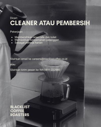 Tugas utama dari posisi ini meliputi pembersihan area cafe secara menyeluruh serta memastikan area toilet tetap higienis demi kenyamanan pelanggan. Bagi Anda yang berminat mengisi posisi ini, lamaran dapat diajukan dengan mengirimkan email ke careers@blacklistcoffee.co.id atau mengirimkan pesan singkat melalui WhatsApp ke nomor 0811222980.