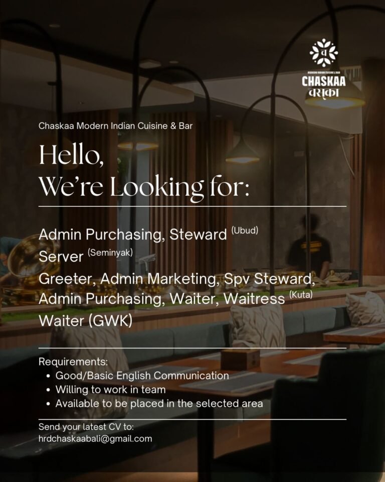 LOKER.BALINEWS.ID, BALI – Chaskaa Modern Indian Cuisine & Bar, salah satu destinasi kuliner India modern terkemuka di Pulau Dewata, secara resmi mengumumkan pembukaan lowongan kerja besar-besaran untuk mengisi berbagai posisi strategis di empat lokasi cabang mereka. Langkah ekspansi dan penguatan tim ini dilakukan untuk menjaga kualitas layanan di area-area pariwisata utama Bali.