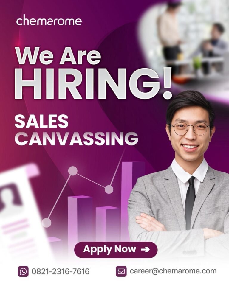 Bagi pelamar yang tertarik, terdapat beberapa kualifikasi utama yang harus dipenuhi, di antaranya memiliki pengalaman minimal 1 tahun di bidang penjualan, mahir dalam teknik canvassing, serta mampu membangun relasi yang kuat dengan klien. Selain itu, kandidat diwajibkan memiliki kendaraan pribadi dan SIM yang masih berlaku untuk mendukung mobilitas kerja. Jika Anda memenuhi kriteria tersebut, berkas lamaran dan CV dapat dikirimkan melalui email ke career@chemarome.com atau menghubungi kontak WhatsApp di 0821-2316-7616.