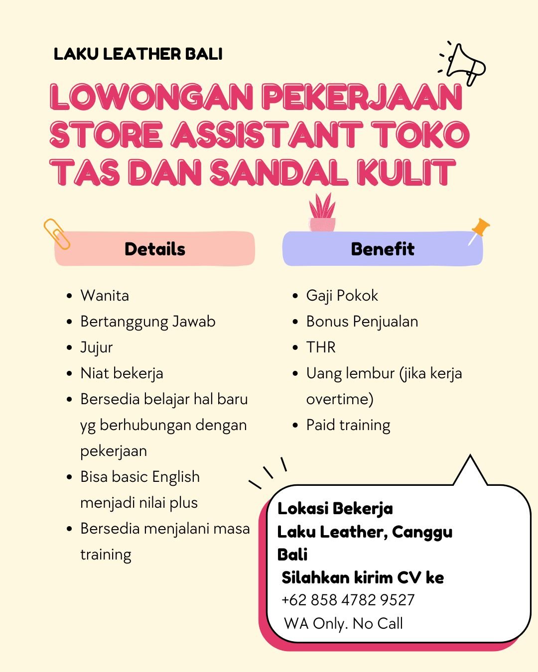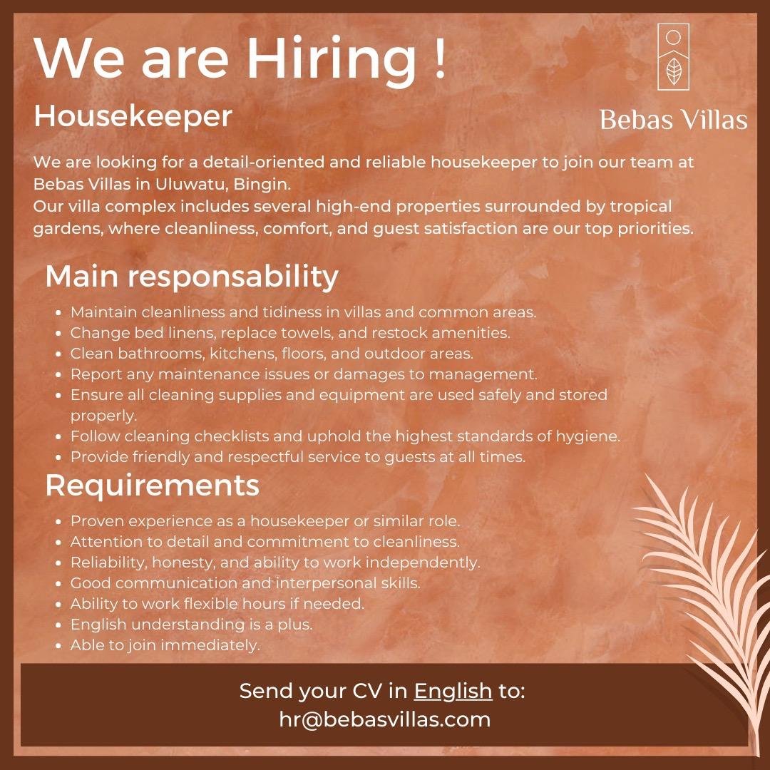 Tiflis Georgian Cuisine mencari kandidat dengan minimal pengalaman kerja 1 tahun di bidang terkait, memiliki kreativitas dan kemampuan teknik kuliner yang baik (khusus posisi Cook), serta mampu bekerja secara tim dengan solid. Bagi pelamar yang berminat, silakan mengirimkan CV ke email atau WhatsApp yang tertera. Perlu diperhatikan bahwa pihak manajemen hanya menerima CV dan tidak melayani panggilan telepon.