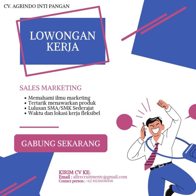 LOKER.BALINEWS.ID, BADUNG – CV. Agrindo Inti Pangan, salah satu unit usaha yang bergerak di sektor pangan, secara resmi mengumumkan pembukaan lowongan pekerjaan untuk posisi Sales Marketing. Peluang karir ini ditujukan bagi individu yang berdomisili atau bersedia ditempatkan di wilayah Abiansemal, Kabupaten Badung. Perusahaan mencari kandidat yang memiliki semangat tinggi dalam menawarkan produk serta memahami dasar-dasar ilmu pemasaran guna memperluas jangkauan pasar di wilayah Bali.