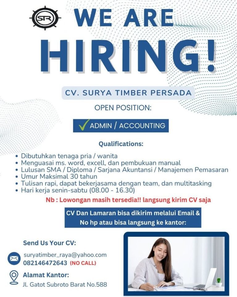 Lowongan Kerja Bali: CV. Surya Timber Persada Denpasar Mencari Admin-Accounting