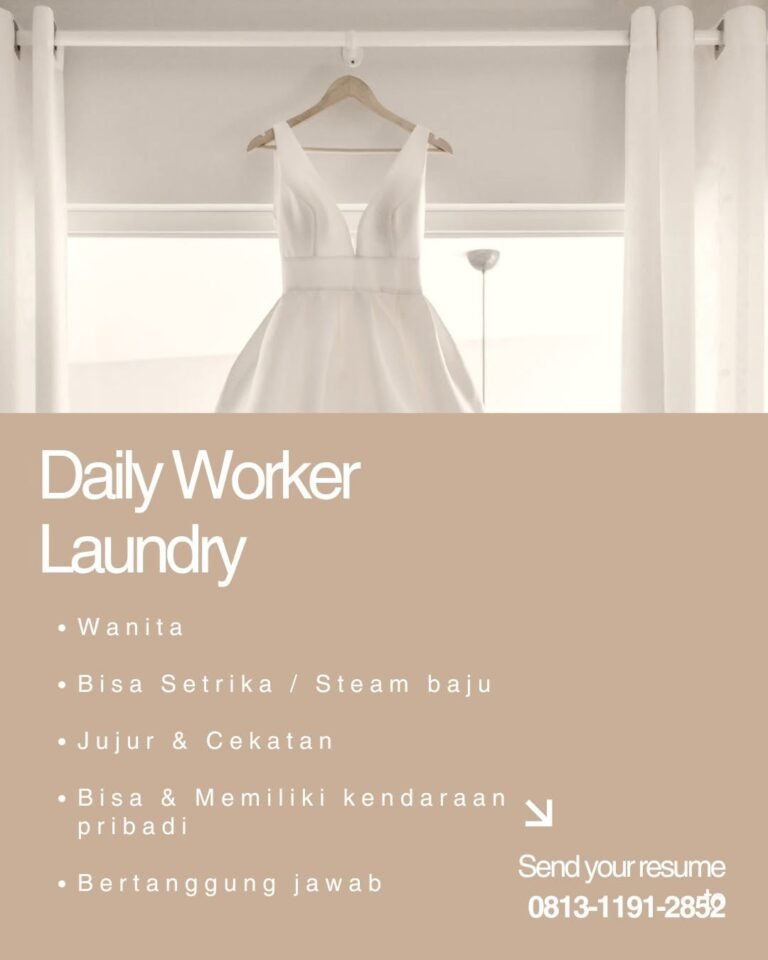 LOKER.BALINEWS.ID, BALI – Bali Steaming Services saat ini membuka kesempatan kerja bagi tenaga kerja lokal untuk bergabung sebagai Daily Worker (DW) Laundry. Posisi ini ditujukan bagi individu yang memiliki ketelitian tinggi dalam memberikan layanan perawatan pakaian berkualitas bagi para pelanggan di wilayah Bali.