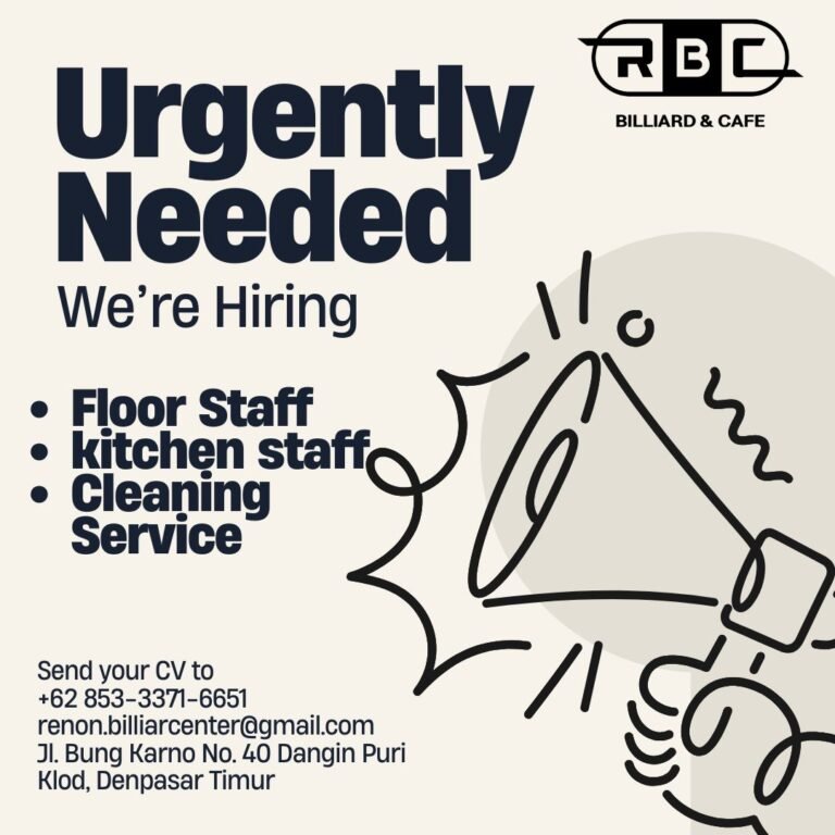 LOKER.BALINEWS.ID, DENPASAR – RBC Billiard & Cafe yang berlokasi di kawasan strategis Denpasar Timur saat ini sedang membuka kesempatan berkarir bagi tenaga kerja profesional untuk bergabung dalam tim mereka. Lowongan ini dibuka untuk mengisi tiga posisi utama, yaitu Floor Staff, Kitchen Staff, dan Cleaning Service. Perusahaan mencari individu yang energik dan siap memberikan pelayanan terbaik di lingkungan kerja yang dinamis.