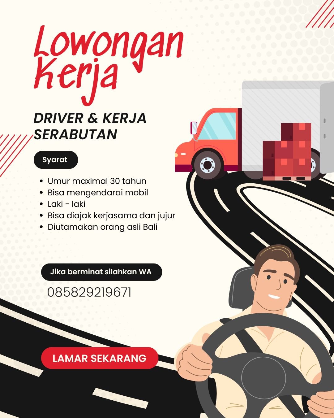 LOKER.BALINEWS.ID, DENPASAR – Sebuah kesempatan kerja kini terbuka bagi masyarakat di wilayah Denpasar yang sedang mencari pekerjaan sebagai Driver dan Tenaga Kerja Serabutan. Lowongan ini ditujukan khusus bagi pria dengan usia maksimal 30 tahun. Kriteria utama yang dicari adalah kandidat yang memiliki kemampuan mengemudikan mobil dengan baik serta memiliki karakter jujur dan mampu bekerja sama di dalam tim untuk mendukung operasional harian.