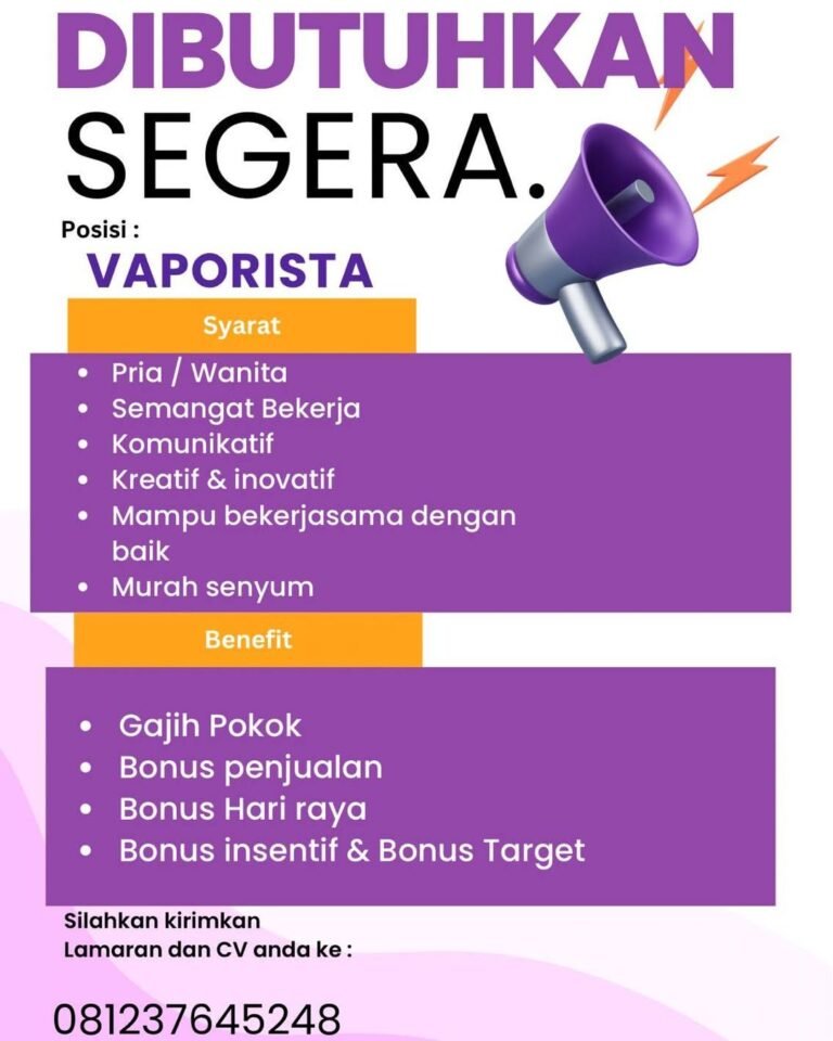 LOKER.BALINEWS.ID, DENPASAR – Kabar gembira bagi Anda para penggiat komunitas vape di Bali, sebuah Vape Store yang berlokasi di wilayah Denpasar saat ini sedang membuka kesempatan berkarir. Posisi yang ditawarkan adalah Vaporista, sebuah peran strategis bagi Anda yang memiliki minat besar dalam dunia rokok elektrik dan pelayanan pelanggan. Lowongan ini terbuka bagi pria maupun wanita yang memiliki semangat kerja tinggi dan kepribadian yang komunikatif.