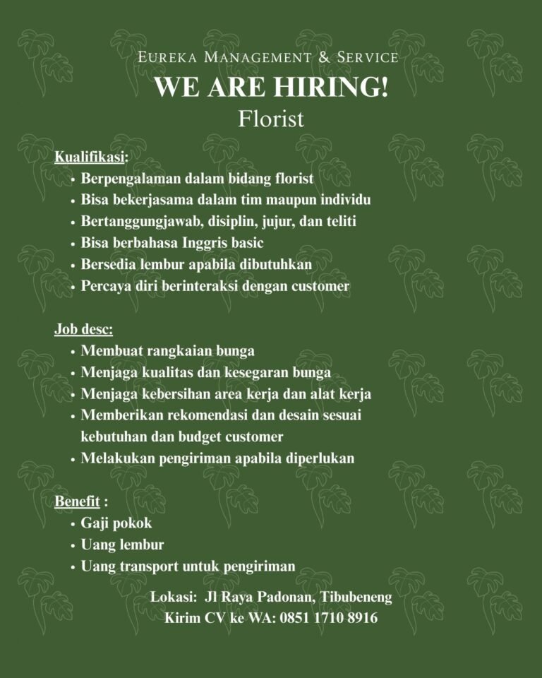 Kriteria yang dicari adalah individu yang memiliki pengetahuan dasar tentang perawatan tanaman tropis, jujur, serta disiplin dalam menjalankan tugas harian. Pelamar diharapkan mampu bekerja secara mandiri maupun dalam tim untuk memastikan standar estetika taman tetap terjaga sesuai dengan prosedur perusahaan. Pengalaman kerja di bidang yang sama pada villa atau resort akan menjadi nilai tambah yang sangat dipertimbangkan oleh tim rekrutmen.