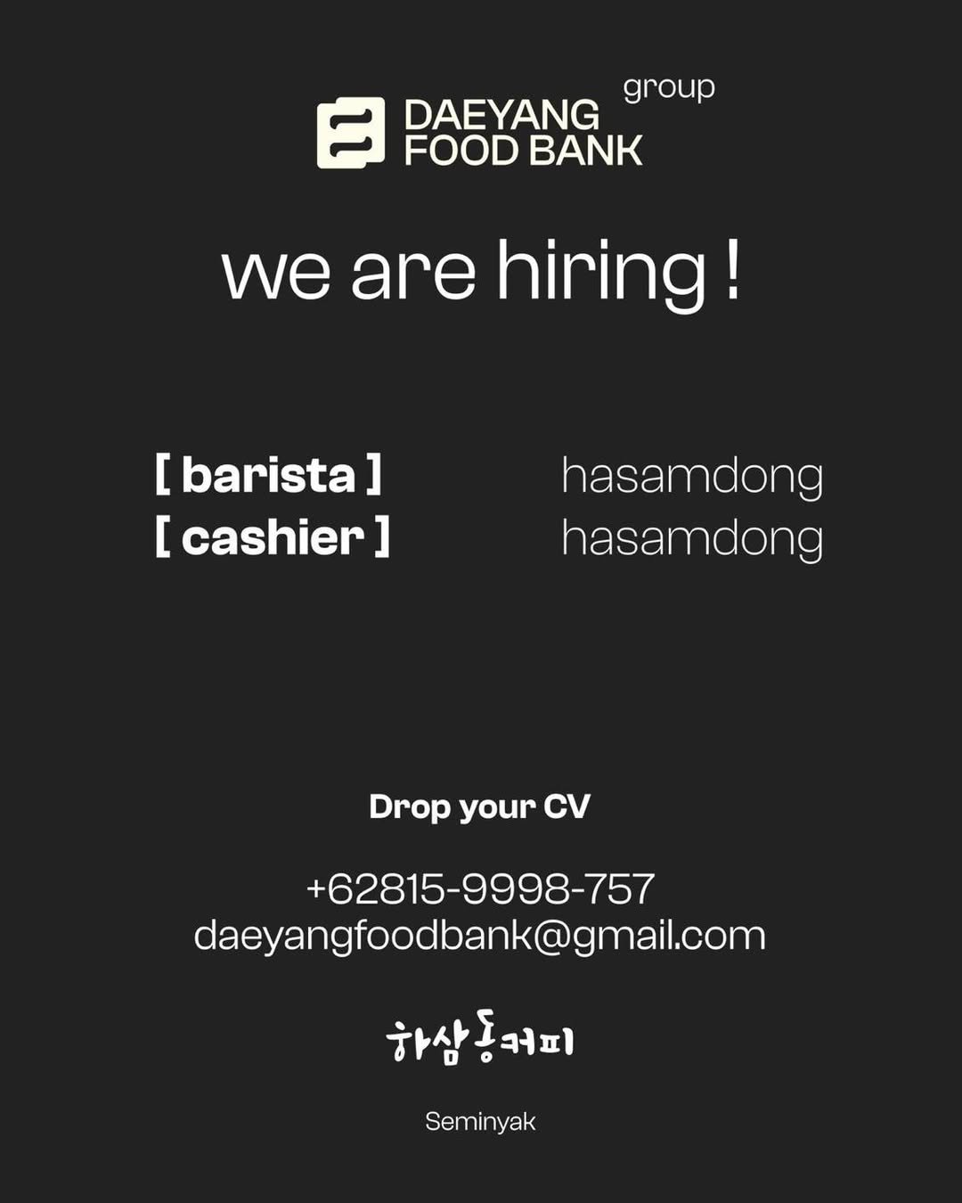 LOKER.BALINEWS.ID, BADUNG – Industri food and beverage di kawasan Seminyak terus berkembang, salah satunya ditandai dengan dibukanya kesempatan karir oleh Daeyang Food Bank Group. Saat ini, Hasamdong Coffee Seminyak sedang melakukan rekrutmen untuk mengisi posisi strategis sebagai Barista dan Kasir demi meningkatkan kualitas pelayanan kepada pelanggan. Lowongan ini terbuka bagi individu yang ingin berkarir di lingkungan kerja yang dinamis di salah satu titik pariwisata utama Bali.