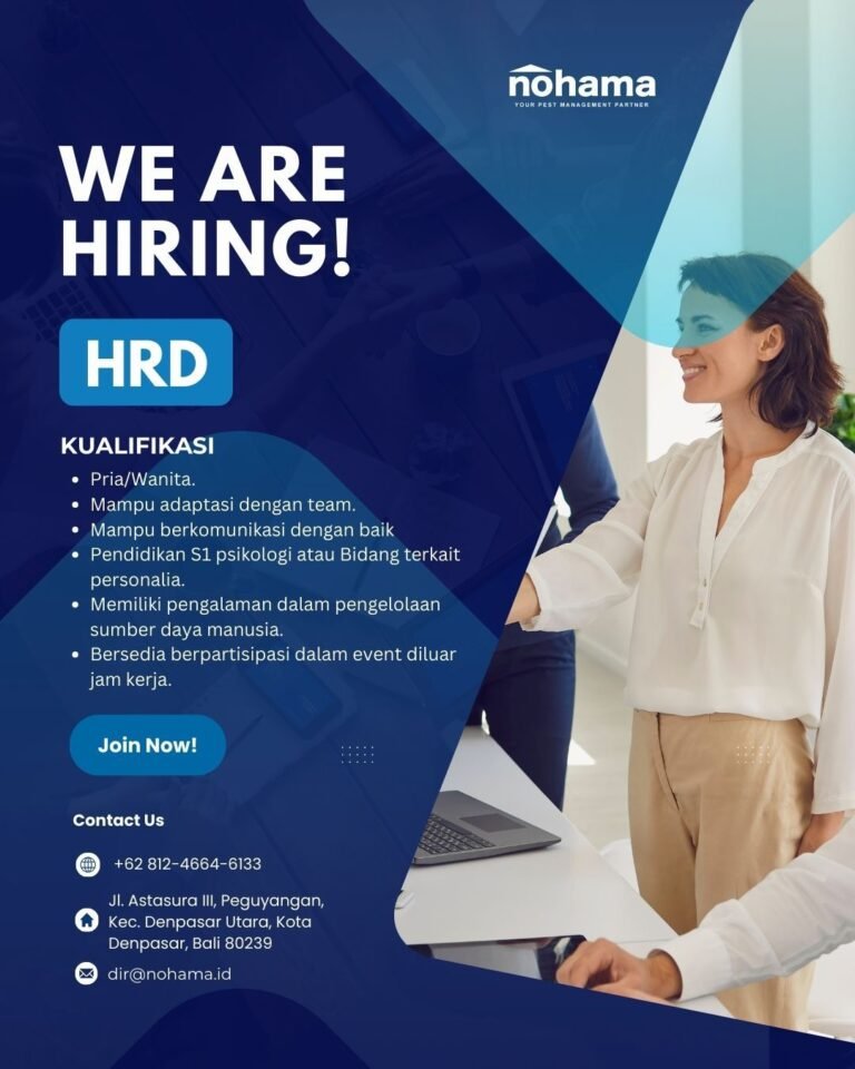 LOKER.BALINEWS.ID, DENPASAR – Nohama, sebuah perusahaan yang sedang berkembang di Bali, saat ini membuka kesempatan karier bagi profesional di bidang sumber daya manusia untuk mengisi posisi HRD (Human Resources Development). Berlokasi di Jalan Mahendradatta No. 88, Denpasar, perusahaan mencari kandidat yang memiliki dedikasi tinggi dan kemampuan manajerial yang baik untuk mengelola aset terpenting perusahaan, yakni tenaga kerja.