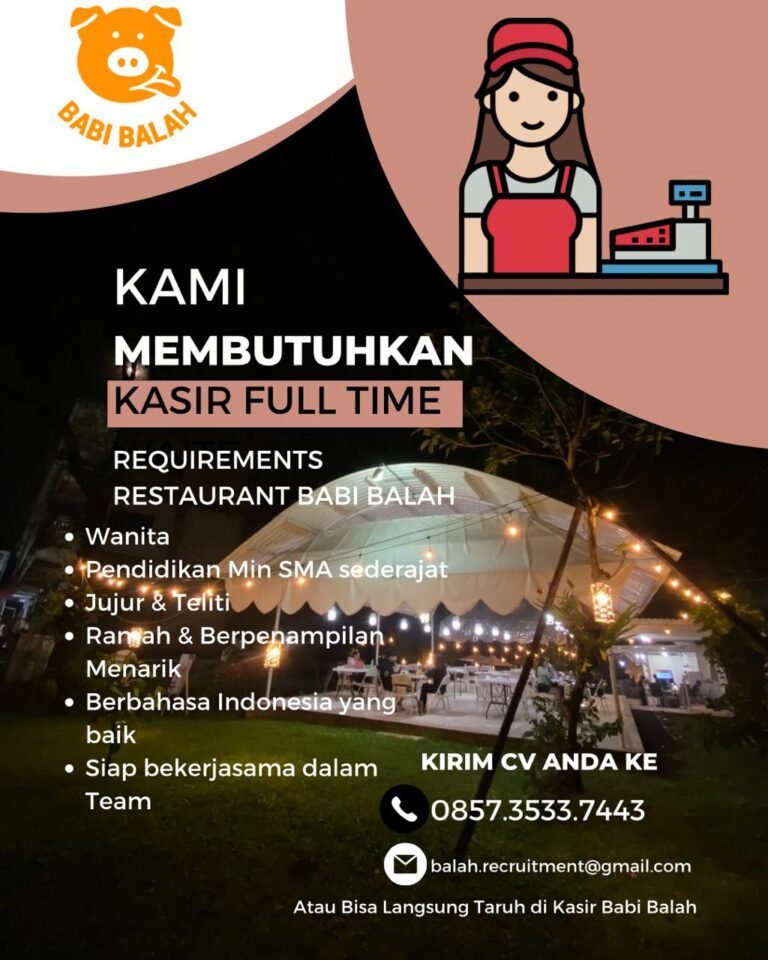 LOKER.BALINEWS.ID, DENPASAR – Restaurant Babi Balah, salah satu destinasi kuliner yang berlokasi di wilayah Denpasar, saat ini sedang membuka peluang karir bagi tenaga kerja profesional untuk mengisi posisi sebagai Kasir Full Time. Perusahaan mencari kandidat perempuan yang memiliki latar belakang pendidikan minimal SMA atau sederajat untuk bergabung dalam tim operasional mereka. Fokus utama dari peran ini adalah memastikan transaksi pembayaran berjalan dengan akurat serta memberikan pelayanan yang prima kepada setiap pengunjung restauran.