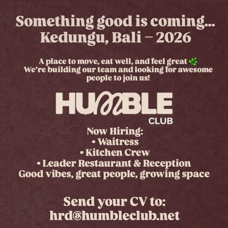 LOKER.BALINEWS.ID, TABANAN — Kesempatan menarik kembali hadir melalui Lowongan Kerja Bali Kedungu Humble Club. Sebuah tempat baru yang akan hadir di kawasan Kedungu, Bali, kini tengah membangun tim dan membuka rekrutmen untuk beberapa posisi sekaligus, yaitu Waitress, Kitchen Crew, serta Leader Restaurant & Reception. Humble Club mengusung konsep tempat berkumpul yang nyaman, sehat, dan ramah, sehingga mencari kandidat yang energik, komunikatif, serta siap bekerja dalam lingkungan yang positif.