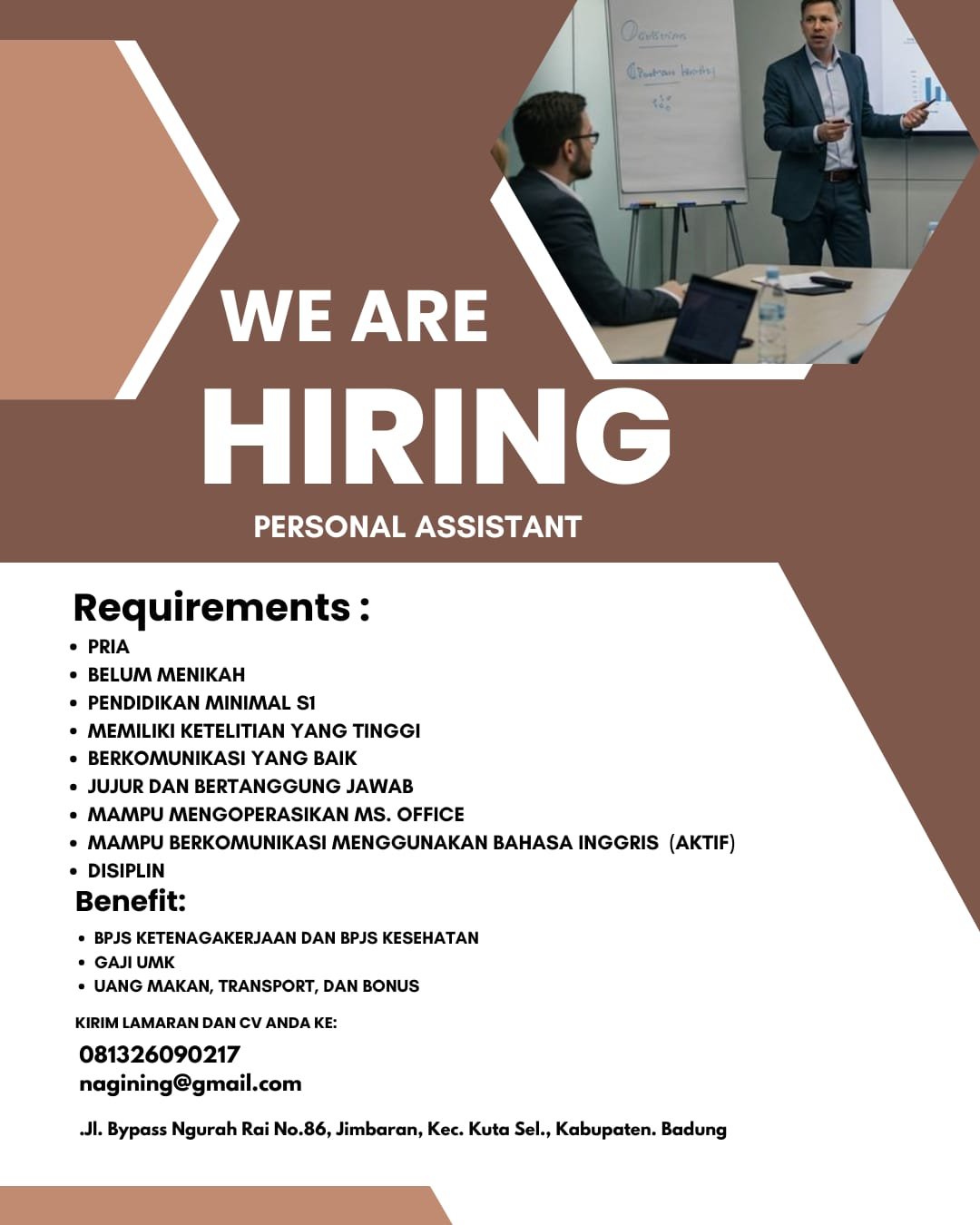 LOKER.BALINEWS.ID, BADUNG – Sebuah peluang karir prestisius kini hadir bagi para profesional muda di wilayah Jimbaran, Kuta Selatan. Dibuka lowongan pekerjaan untuk posisi Personal Assistant yang akan ditempatkan di kantor yang berlokasi di Jalan Bypass Ngurah Rai No. 86, Jimbaran. Posisi ini sangat strategis bagi individu yang memiliki ketelitian tinggi dan kemampuan manajerial yang baik dalam mendukung operasional harian pimpinan.