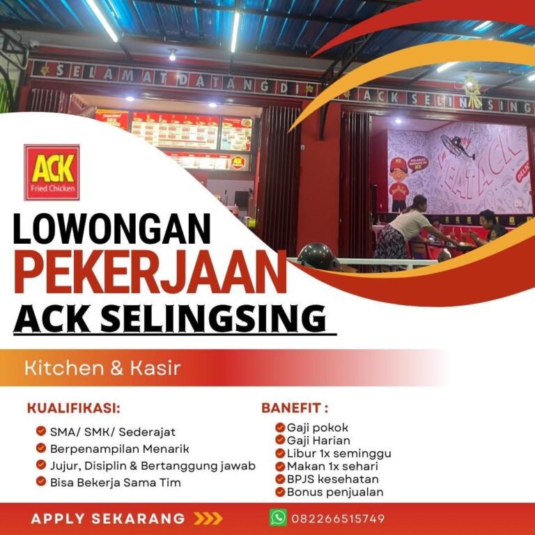 Melalui Lowongan Kerja Bali Kitchen dan Kasir ACK Selingsing ini, perusahaan menawarkan berbagai benefit menarik seperti gaji pokok, gaji harian, bonus penjualan, BPJS kesehatan, makan satu kali sehari, serta libur satu kali dalam seminggu. Posisi ini juga menuntut kandidat yang mampu bekerja sama dalam tim dan siap mendukung operasional outlet. Bagi pencari kerja yang berminat, lamaran dapat segera dikirimkan melalui WhatsApp ke nomor 0822-6651-5749 untuk proses rekrutmen lebih lanjut.