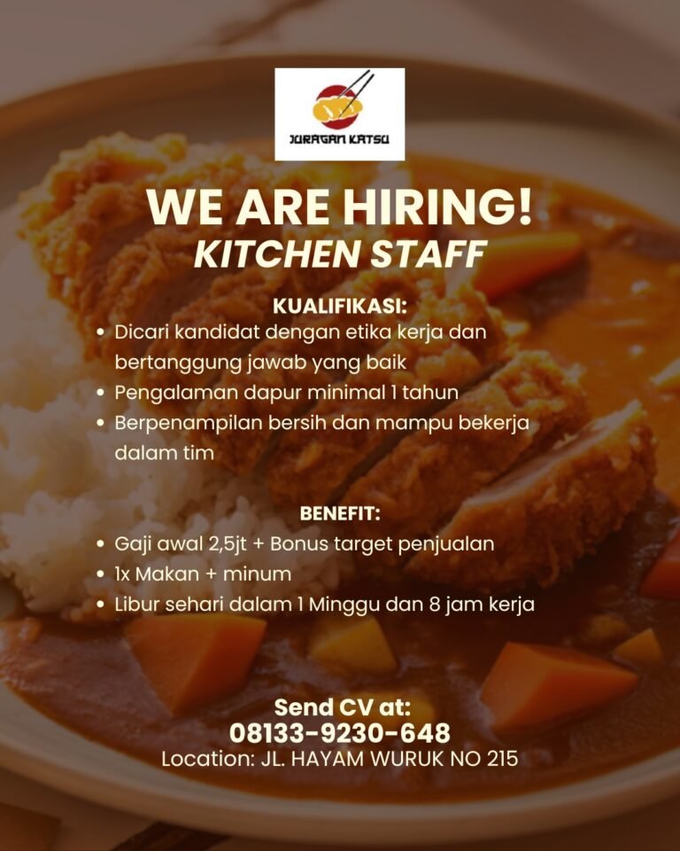 LOKER.BALINEWS.ID, BALI — Juragan Katsu membuka lowongan kerja untuk posisi Kitchen Staff.