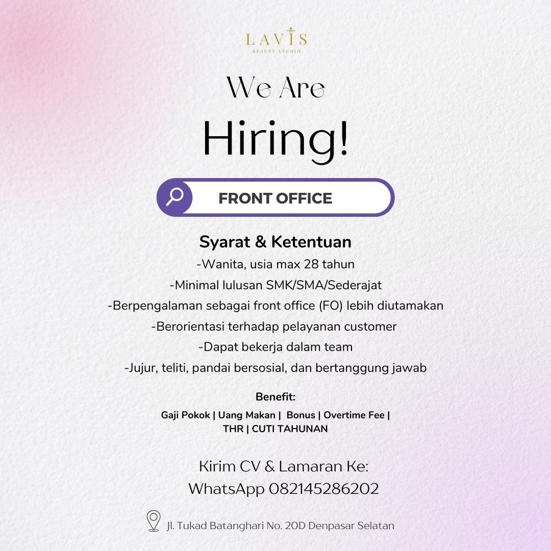 LOKER.BALINEWS.ID, DENPASAR — Lavis Beauty Studio resmi membuka kesempatan kerja bagi talenta muda yang ingin berkarier di bidang kecantikan. Perusahaan yang berlokasi di Denpasar Selatan ini tengah mencari kandidat untuk posisi Front Office dan Therapist Nails dengan kualifikasi sesuai kebutuhan operasional.