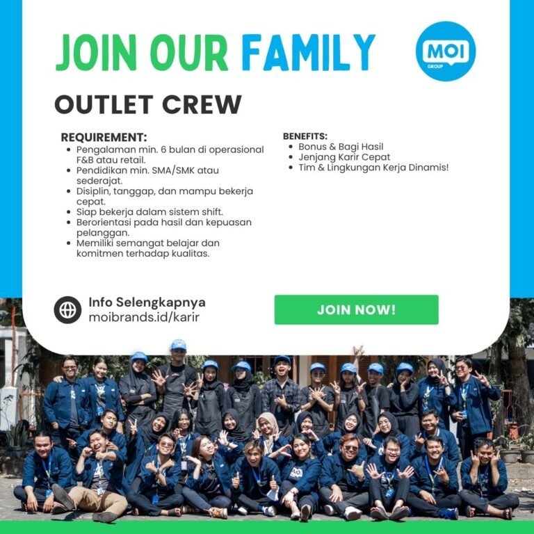 LOKER.BALINEWS.ID, DENPASAR – MOI Brands, sebuah grup bisnis yang bergerak di sektor pelayanan, kembali membuka kesempatan bagi talenta muda di Bali untuk bergabung dalam tim operasional mereka. Melalui program rekrutmen “Join Our Family”, perusahaan mencari individu yang berorientasi pada hasil dan kepuasan pelanggan untuk mengisi posisi sebagai Outlet Crew. Langkah ini diambil guna memperkuat layanan di berbagai titik outlet mereka dengan mengedepankan kualitas dan kerjasama tim yang dinamis.
