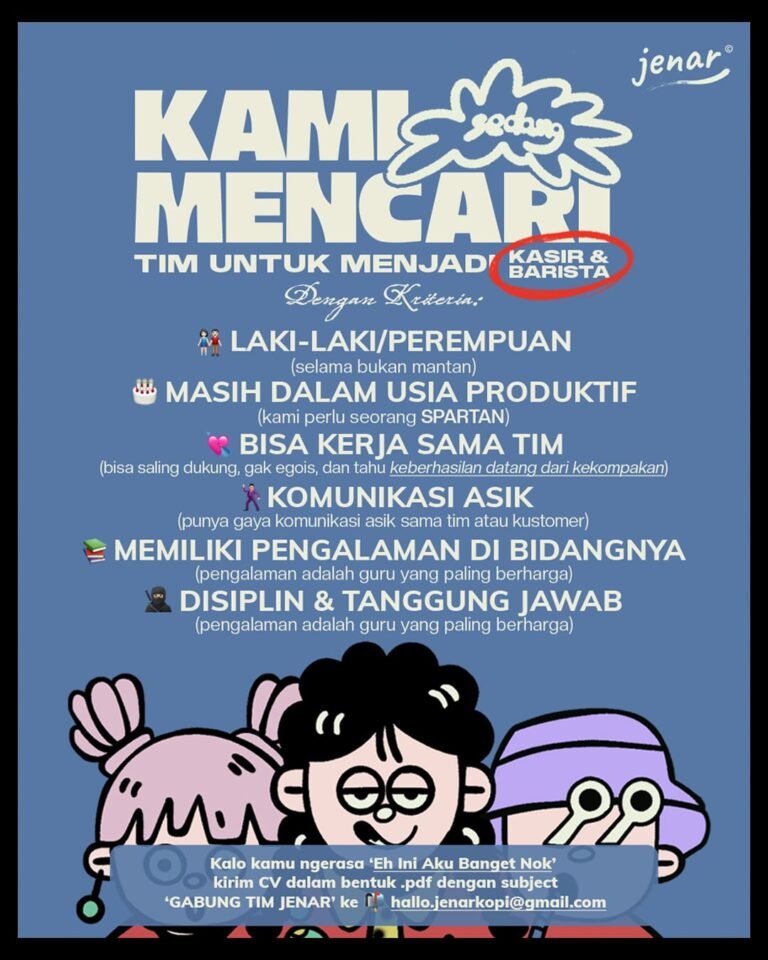 Bagi para profesional di bidang kopi yang ingin mengembangkan karir bersama Neuf, berkas Curriculum Vitae (CV) dapat dikirimkan langsung melalui alamat email resmi di neuf.day18@gmail.com. Pastikan Anda adalah seorang team player yang baik dan berorientasi pada pelayanan pelanggan untuk bergabung dalam tim yang sedang bertumbuh ini.
