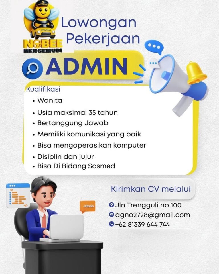 LOKER.BALINEWS.ID, DENPASAR – Nobee Mengemudi, salah satu penyedia jasa pelatihan mengemudi di Bali, saat ini sedang membuka kesempatan karier bagi tenaga kerja lokal untuk mengisi posisi Admin. Perusahaan mencari kandidat yang berdedikasi untuk ditempatkan di kantor mereka yang berlokasi di Jalan Trengguli No. 100, Denpasar. Posisi ini terbuka bagi pelamar wanita dengan usia maksimal 35 tahun yang memiliki integritas tinggi serta sikap disiplin dan jujur dalam bekerja.