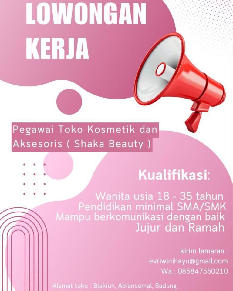 LOKER.BALINEWS.ID, BADUNG – Shaka Beauty, sebuah toko yang bergerak di bidang penjualan kosmetik dan aksesoris, saat ini sedang membuka kesempatan berkarir bagi tenaga kerja produktif. Posisi yang ditawarkan adalah sebagai Pegawai Toko untuk penempatan di wilayah Blahkiuh, Abiansemal, Badung. Lowongan ini terbuka bagi wanita dengan rentang usia 18 hingga 35 tahun yang memiliki minat di industri kecantikan.