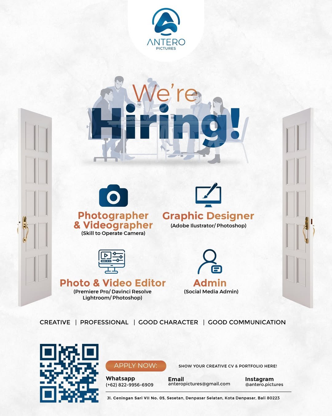 Lowongan Kerja Bali: Photographer, Videographer, Editor, Graphic Designer & Admin — Antero Pictures