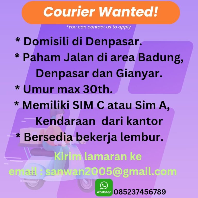 LOKER.BALINEWS.ID, DENPASAR – Kesempatan kerja terbaru kini tersedia bagi masyarakat yang berdomisili di Kota Denpasar untuk menempati posisi Courier. Perusahaan sedang mencari kandidat pria atau wanita dengan usia maksimal 30 tahun yang memiliki pemahaman mendalam mengenai rute jalan di wilayah Badung, Denpasar, dan Gianyar. Posisi ini sangat strategis bagi individu yang menyukai pekerjaan lapangan dan memiliki etos kerja yang kuat untuk mendukung distribusi barang di area tersebut.