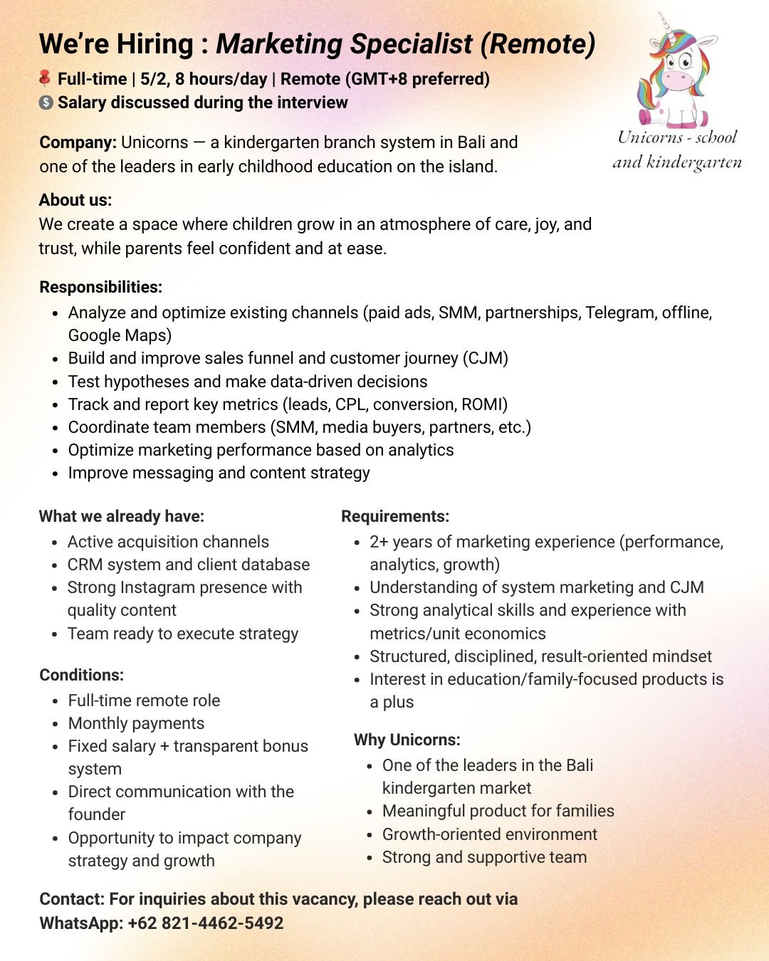 Kualifikasi utama yang dibutuhkan untuk posisi Administration Officer dan Marketing meliputi latar belakang pendidikan minimal lulusan SMA/SMK hingga D3 dengan jurusan yang relevan. Selain itu, calon pelamar diharapkan mampu mengoperasikan Microsoft Office dan memiliki kemampuan komunikasi yang baik dalam Bahasa Indonesia maupun Bahasa Inggris tingkat dasar. Pihak perusahaan juga memberikan nilai tambah bagi kandidat yang sudah memiliki pengalaman kerja di bidang yang serupa, serta mewajibkan seluruh pelamar untuk berdomisili di wilayah Bali.