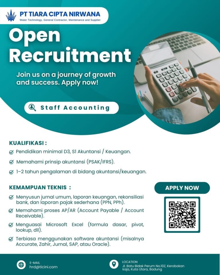 Bagi pencari kerja yang ingin berkembang bersama perusahaan yang stabil dan terus berkembang, lowongan kerja Bali ini merupakan kesempatan yang sangat baik. Pelamar dapat mengirimkan CV dan lamaran melalui email resmi perusahaan atau melamar melalui QR Code yang tersedia pada poster lowongan.