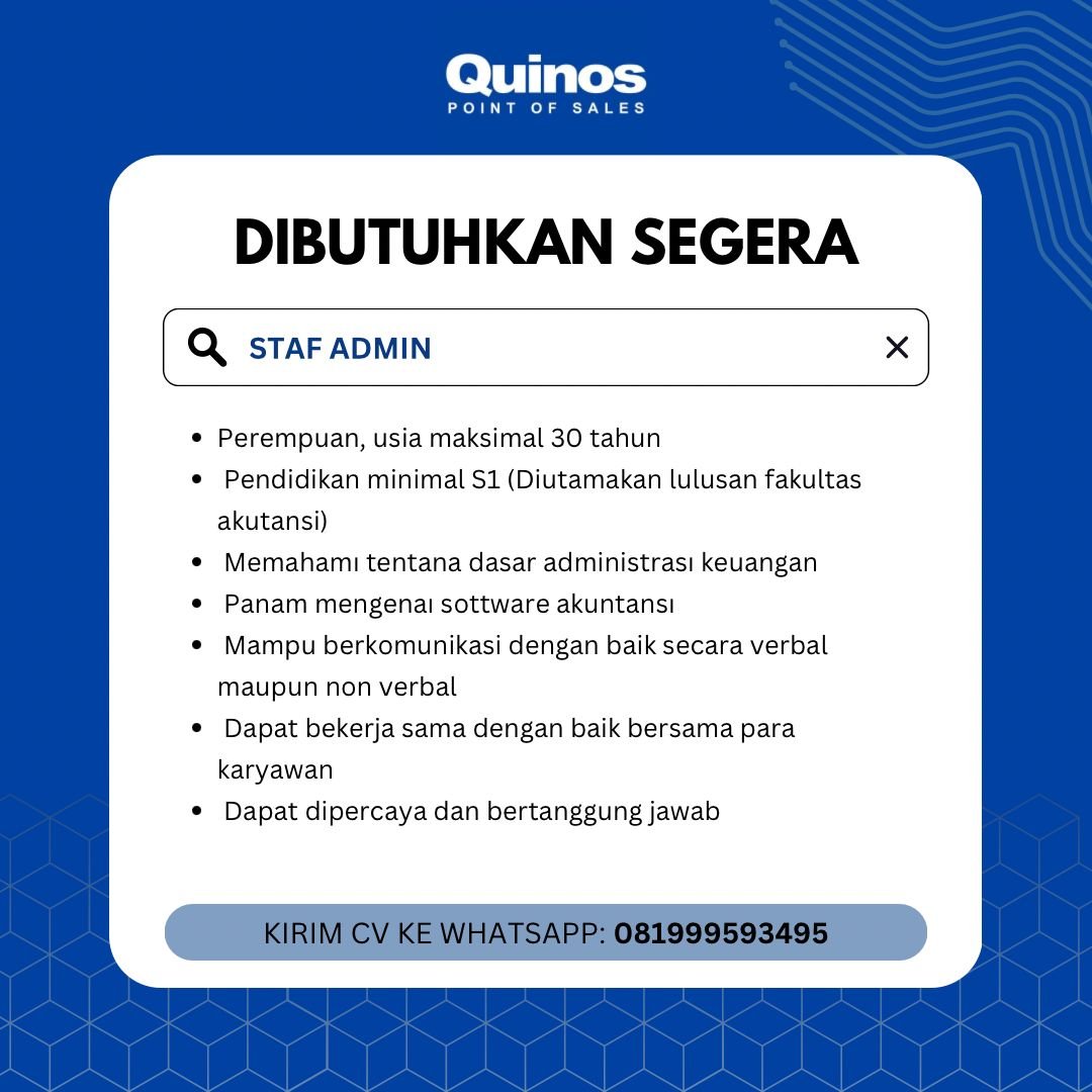 LOKER.BALINEWS.ID, BALI – Quinos Point of Sales, perusahaan penyedia sistem manajemen penjualan, saat ini sedang mencari tenaga profesional untuk mengisi posisi Staff Admin guna memperkuat operasional kantor di wilayah Bali. Posisi ini terbuka bagi individu yang memiliki ketelitian tinggi dan kemampuan administrasi yang baik untuk mendukung efisiensi layanan perusahaan. Kandidat yang terpilih diharapkan mampu menangani berbagai tugas administratif dengan penuh tanggung jawab.