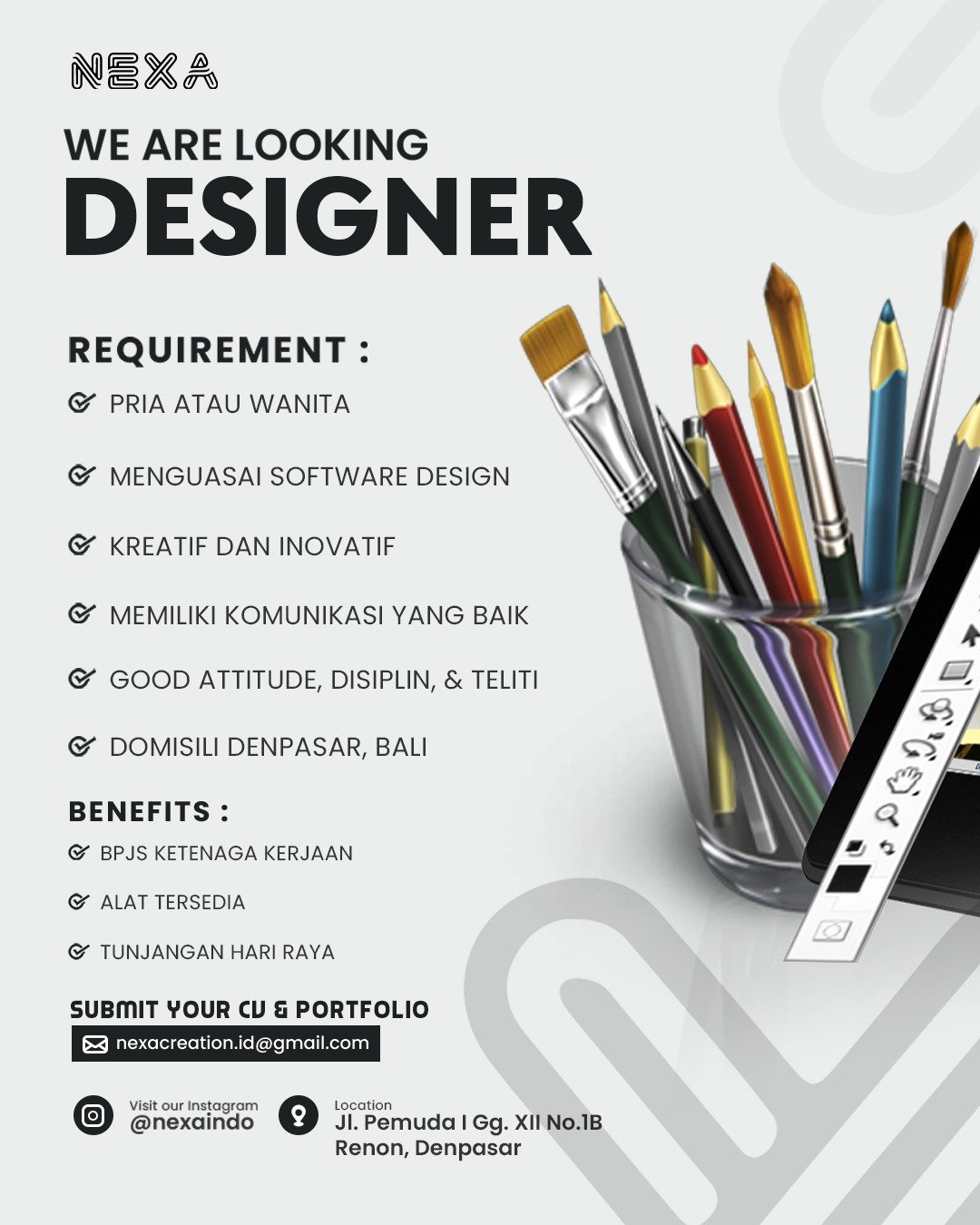 Kirim lamaran ke email: marthen@junglegoldbali.com