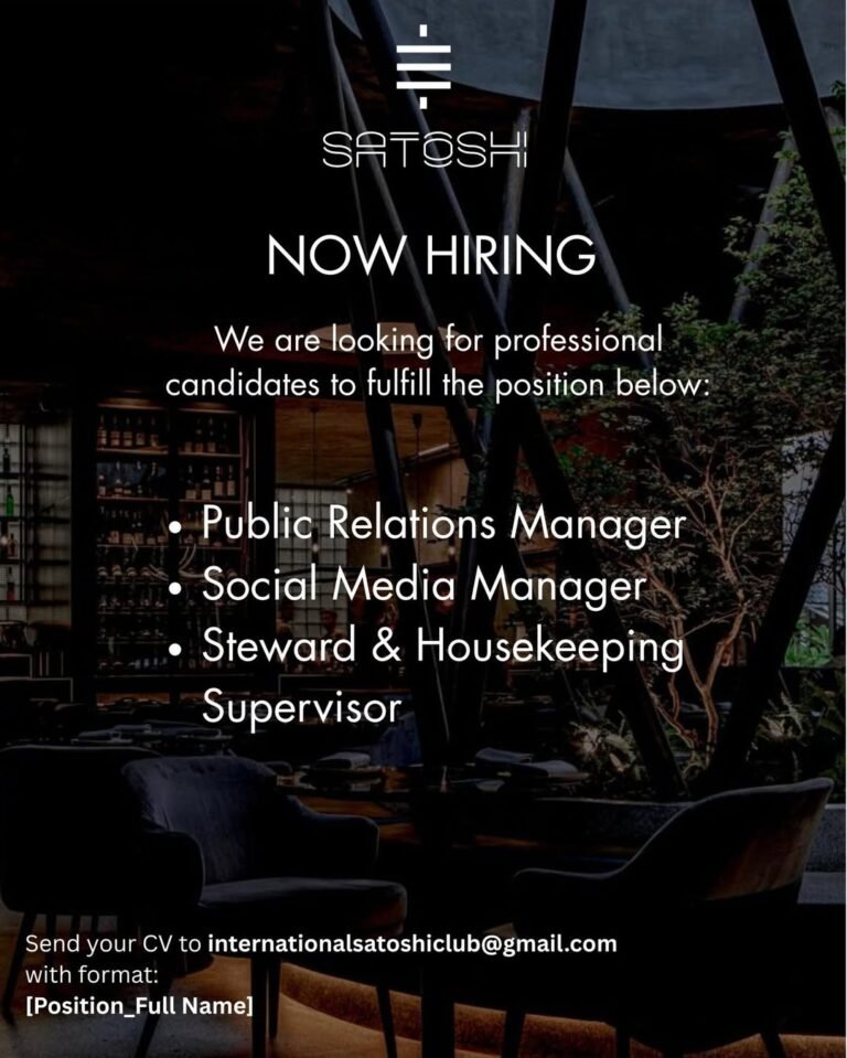 LOKER.BALINEWS.ID, BALI – Industri hospitality dan gaya hidup di Bali terus menunjukkan geliat positif dengan dibukanya kesempatan karier di salah satu destinasi eksklusif, Satoshi. Saat ini, Satoshi sedang mencari kandidat profesional dan berpengalaman untuk mengisi tiga posisi strategis guna memperkuat tim manajemen mereka. Adapun posisi yang ditawarkan meliputi Public Relations (PR) Manager, Social Media Manager, serta Steward & Housekeeping Supervisor. Langkah rekrutmen ini dilakukan untuk memastikan standar layanan dan representasi merek tetap berada pada level tertinggi di tengah persaingan industri F&B dan gaya hidup yang semakin kompetitif.