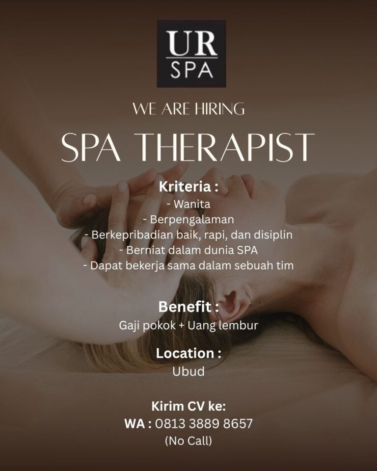 LOKER.BALINEWS.ID, GIANYAR – UR SPA yang berlokasi di kawasan Ubud sedang membuka lowongan pekerjaan untuk posisi Spa Therapist. Kesempatan ini diperuntukkan bagi tenaga kerja wanita yang memiliki minat besar serta niat yang kuat untuk berkarir secara profesional di dunia kecantikan dan kesehatan (SPA).