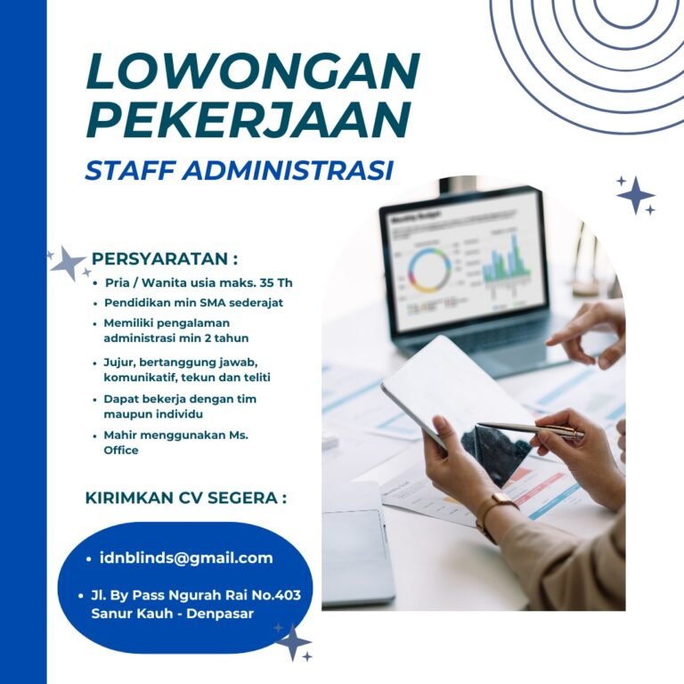 LOKER.BALINEWS.ID, DENPASAR – Peluang karir di bidang perkantoran kini kembali terbuka bagi para pencari kerja di wilayah Sanur dan sekitarnya. SHIMA secara resmi mengumumkan pembukaan lowongan pekerjaan untuk posisi Staff Administrasi guna menunjang kelancaran operasional dan manajemen data perusahaan. Langkah rekrutmen ini ditujukan untuk menjaring kandidat yang memiliki ketelitian tinggi dan kemampuan organisasi yang baik untuk ditempatkan di kantor mereka yang berlokasi di Jl. By Pass Ngurah Rai No. 403, Sanur Kauh.
