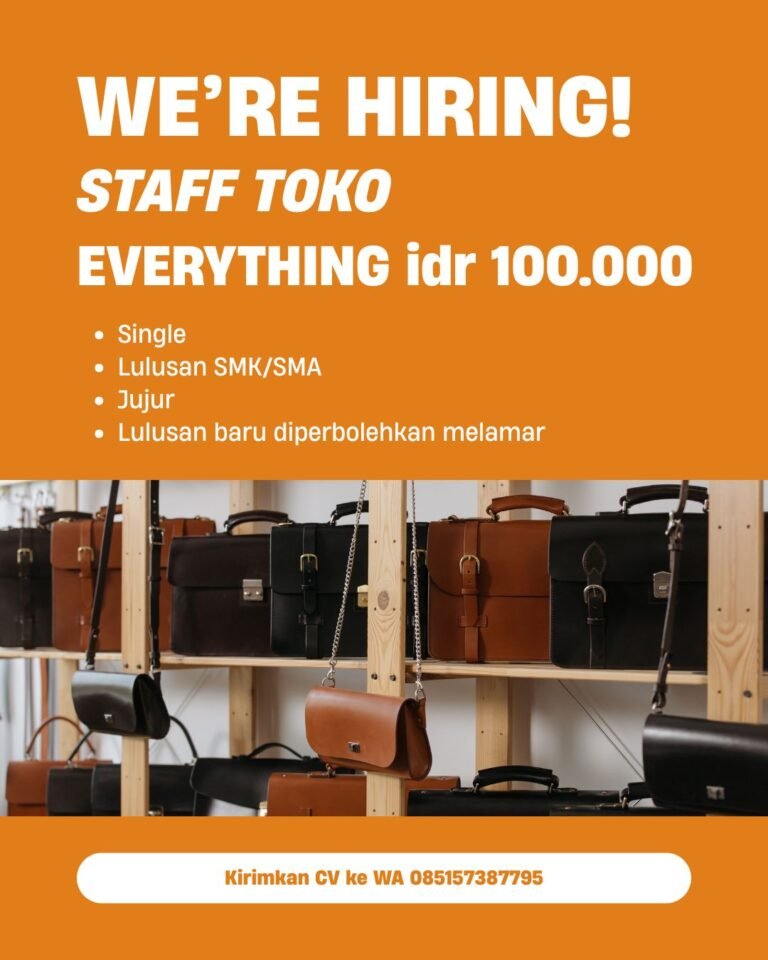 Melalui Lowongan Kerja Bali Staff Toko Everything IDR 100.000, perusahaan juga memberikan peluang bagi lulusan baru (fresh graduate) untuk melamar tanpa pengalaman kerja sebelumnya. Posisi ini cocok bagi pencari kerja yang ingin memulai karier di sektor ritel dengan lingkungan kerja dinamis. Bagi pelamar yang berminat, CV dapat dikirimkan langsung melalui WhatsApp ke nomor 0851 5738 7795 untuk proses seleksi lebih lanjut.