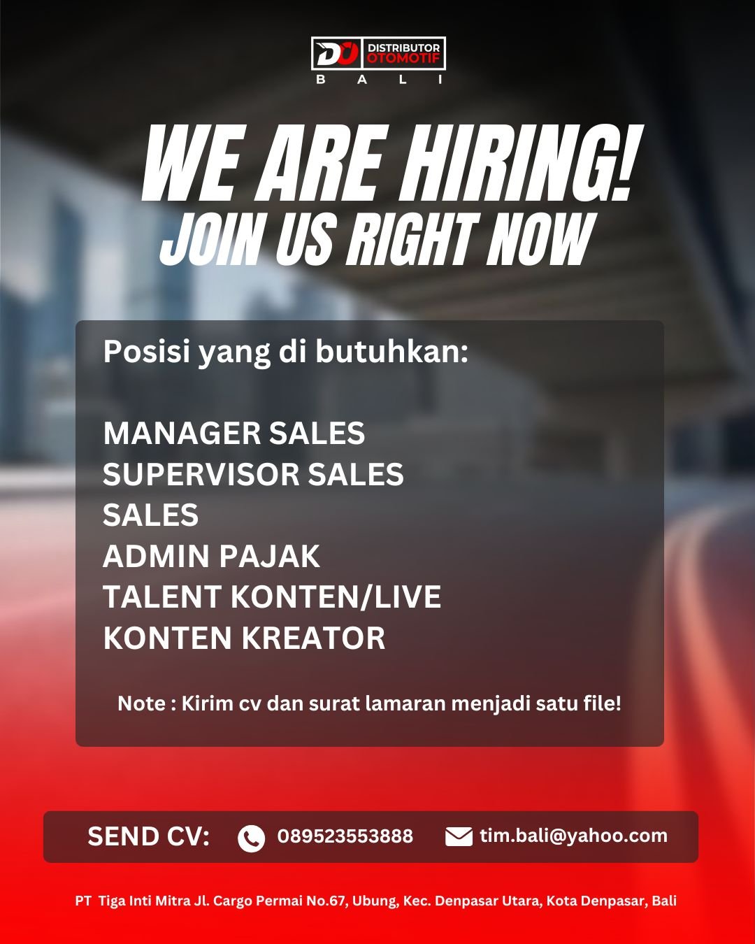 Lowongan Kerja Bali Terbaru Berbagai Posisi Distributor Otomotif Bali