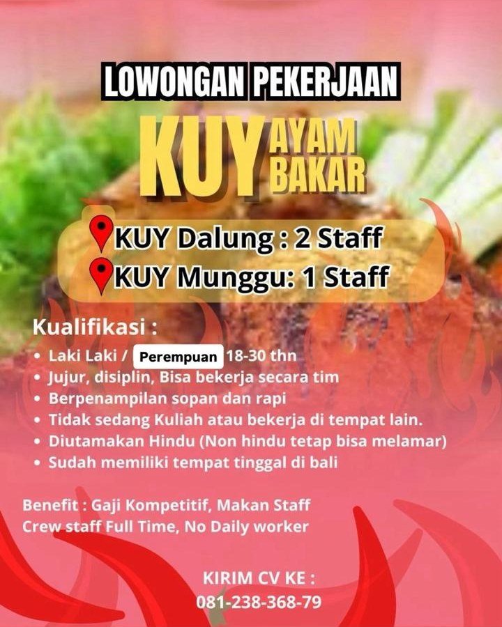 • Berdomisili dan bersedia ditempatkan di Denpasar, Bali