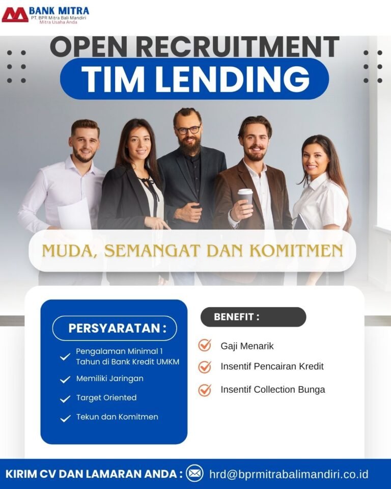 LOKER.BALINEWS.ID, BALI – PT BPR Mitra Bali Mandiri atau yang dikenal dengan Bank Mitra saat ini membuka kesempatan karir bagi tenaga profesional muda untuk bergabung sebagai Tim Lending. Perusahaan mencari individu yang memiliki semangat tinggi, berkomitmen, dan berorientasi pada target untuk memperkuat layanan perbankan mereka di wilayah Bali. Posisi ini memegang peranan penting dalam pengembangan penyaluran kredit, khususnya bagi sektor UMKM.