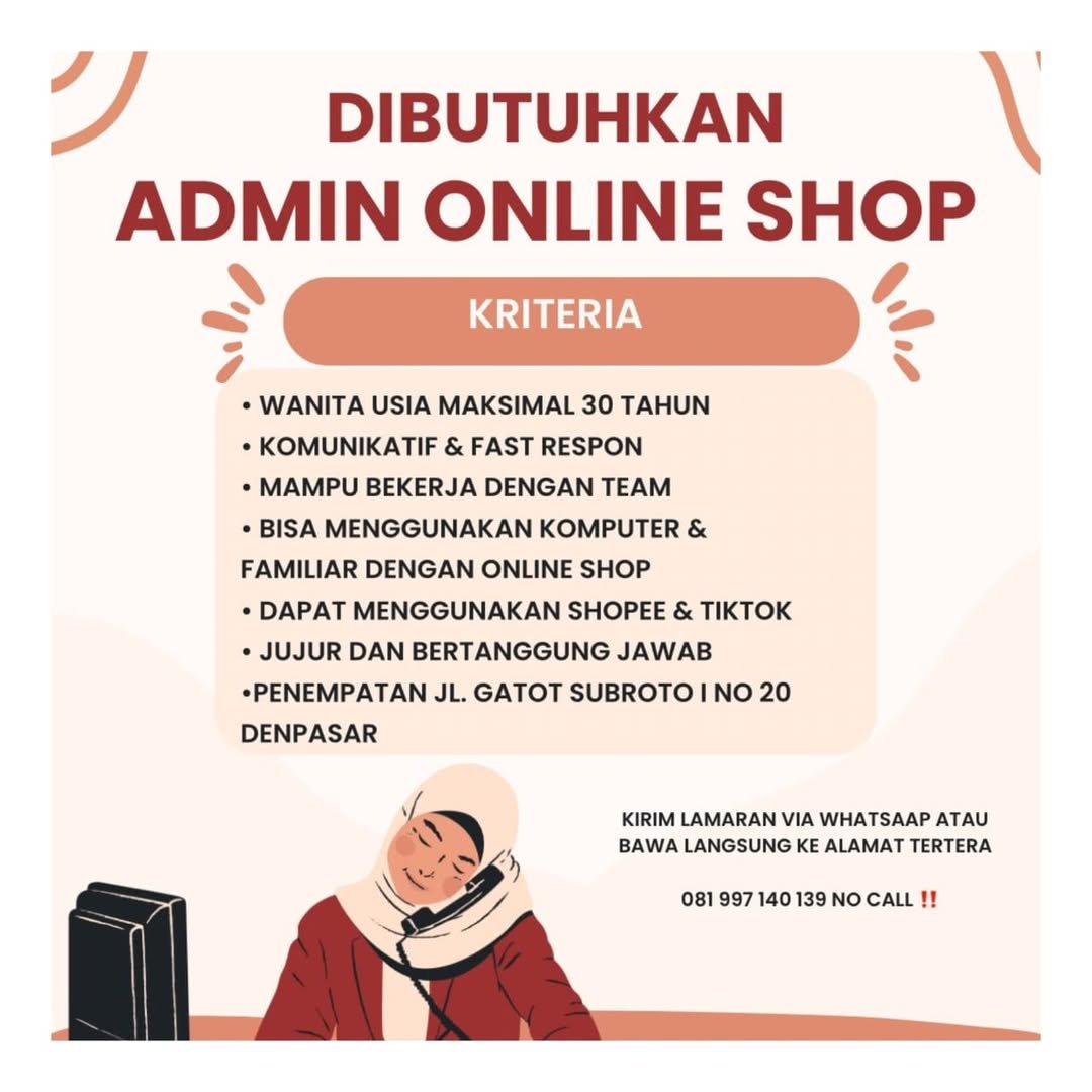 Lowongan Kerja Bali: Toko Online di Denpasar Cari Admin Online Shop yang Komunikatif