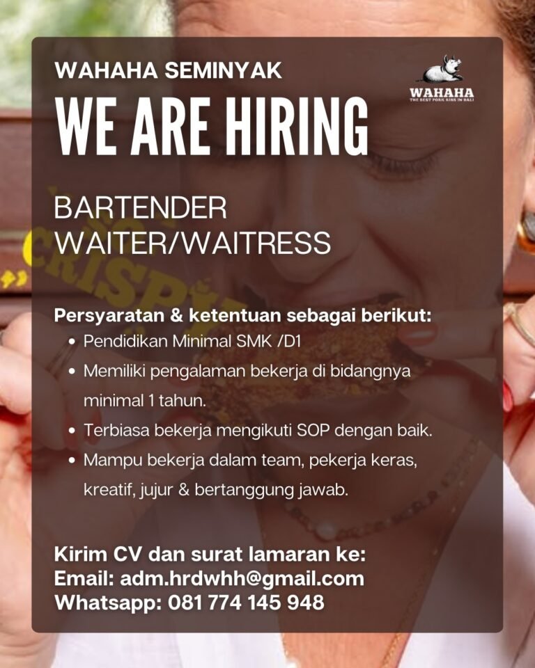 Lowongan Kerja Bali: WAHAHA Seminyak Membuka Posisi Bartender dan Waiter/Waitress