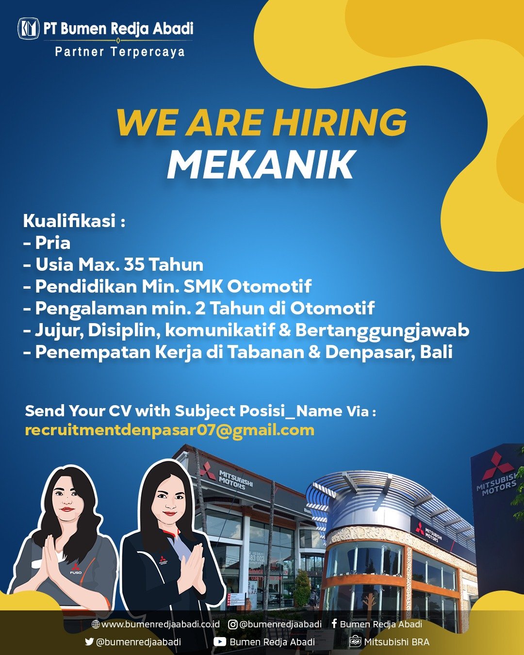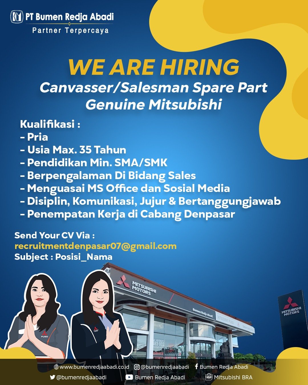 Pelamar dapat mengirimkan CV ke email hr@santanerabali.com atau WhatsApp 082340623041. Pastikan mencantumkan posisi yang dilamar pada subjek email.