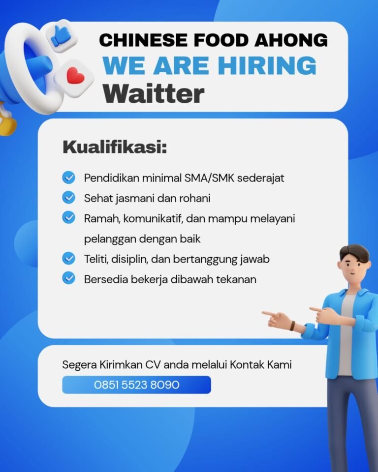 LOKER.BALINEWS.ID, BADUNG – Restoran Chinese Food Ahong yang berlokasi di kawasan strategis Jimbaran, Kuta Selatan, saat ini sedang membuka peluang karier bagi tenaga kerja muda yang dinamis untuk mengisi posisi sebagai Waiter. Rekrutmen ini ditujukan untuk meningkatkan kualitas layanan operasional restoran guna memberikan pengalaman bersantap yang terbaik bagi para pelanggan setianya.