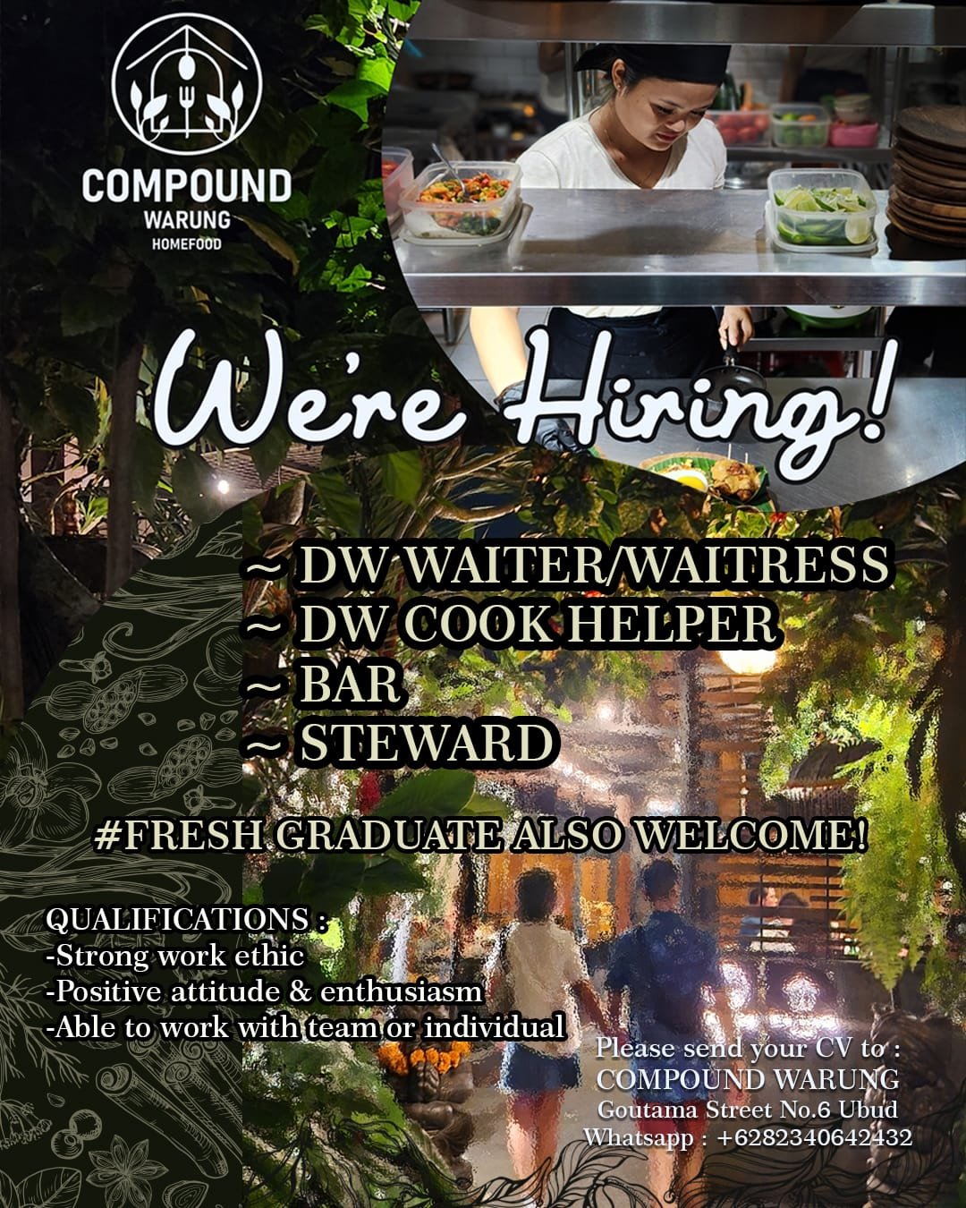Bagi kandidat yang memenuhi kualifikasi, silakan mengirimkan lamaran ke email atau kontak yang tertera pada poster informasi lowongan. Segera ajukan diri Anda dan raih kesempatan berkarier bersama Santanera di Canggu, Badung.