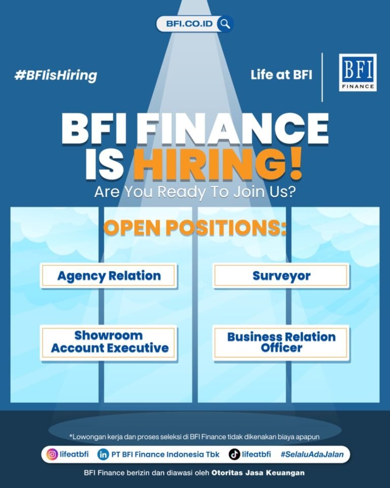 JAKARTA/NASIONAL – BFI Finance Indonesia Tbk, salah satu perusahaan pembiayaan terkemuka di Indonesia, tengah membuka rekrutmen besar-besaran melalui program #BFIisHiring. Kesempatan ini ditujukan bagi individu yang siap bergabung dan berkontribusi di industri jasa keuangan.