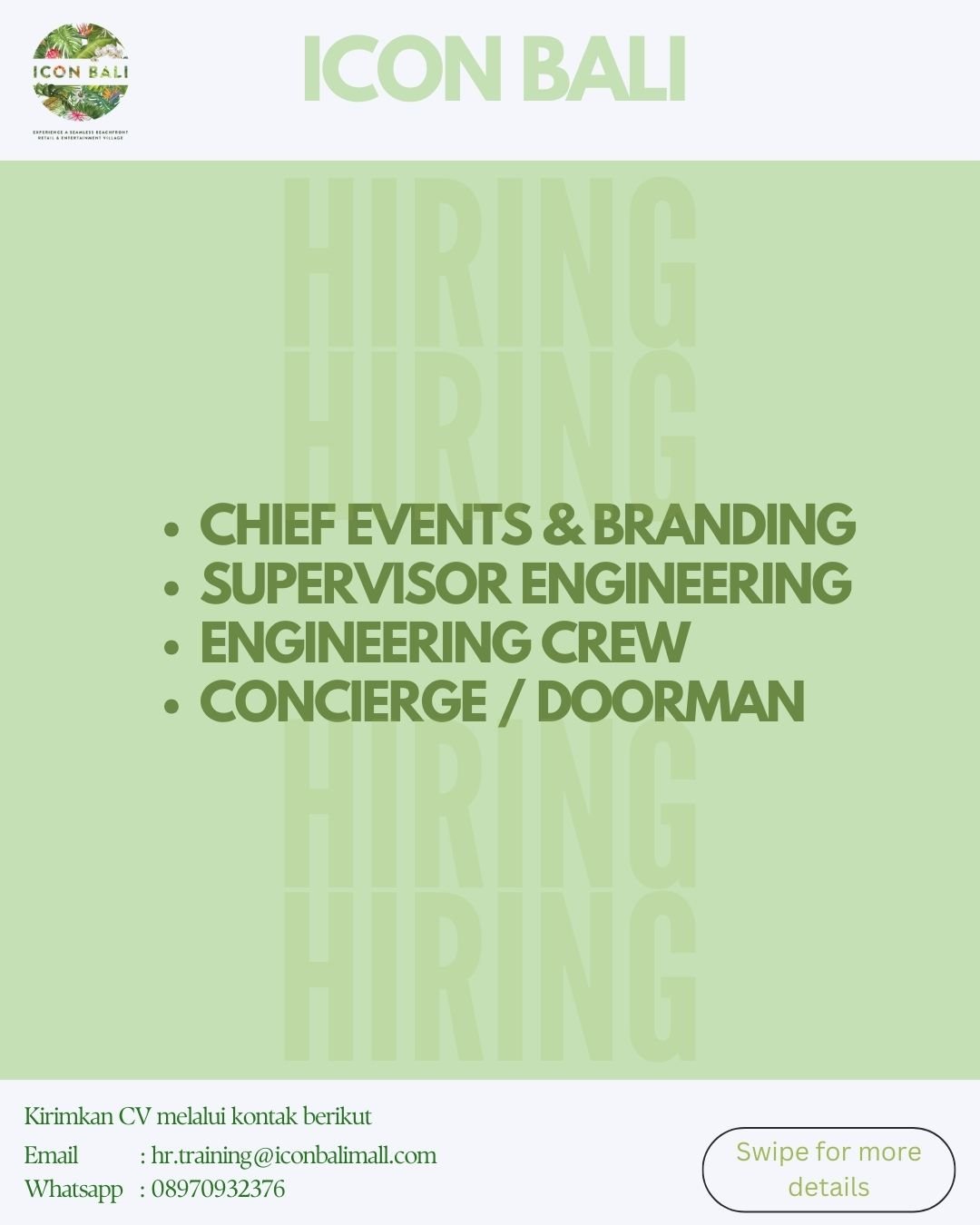 • Email: hr.training@iconbalimall.com